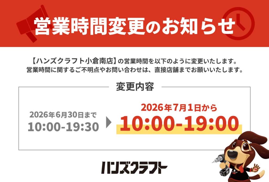 ※閉店時刻のみ30分繰り上がり、19:00閉店となります。開店時刻(10:00)は変更ございません。
