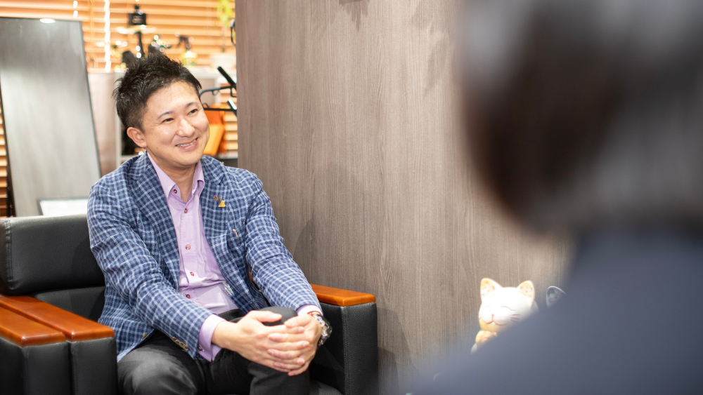 理念経営を実践し、「幸せの追求――経営を通じて、縁あるすべての人を幸せにする」という理念のもと、若手社員一人ひとりと真剣に向き合う。行動と言葉の両方で信頼を築く熱い社長。